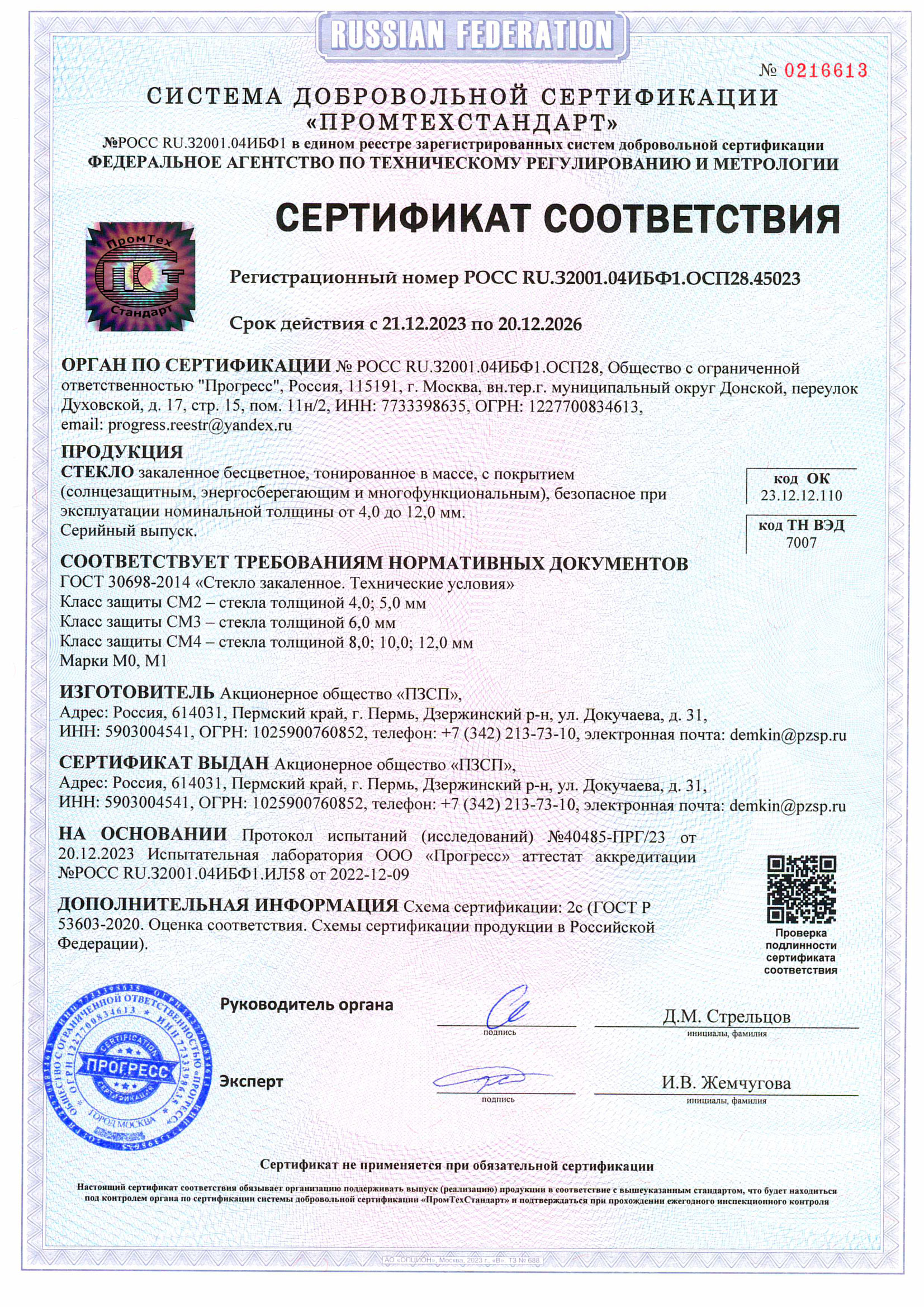Сертификаты о соответствии закалённого стекла