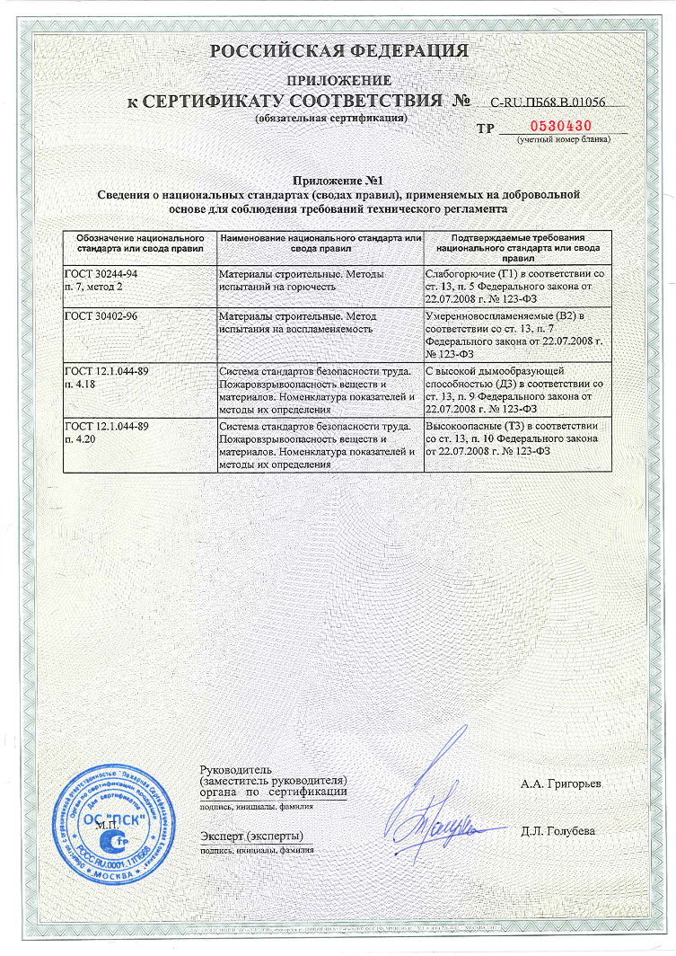 Сертификаты о соответствии PROPLEX