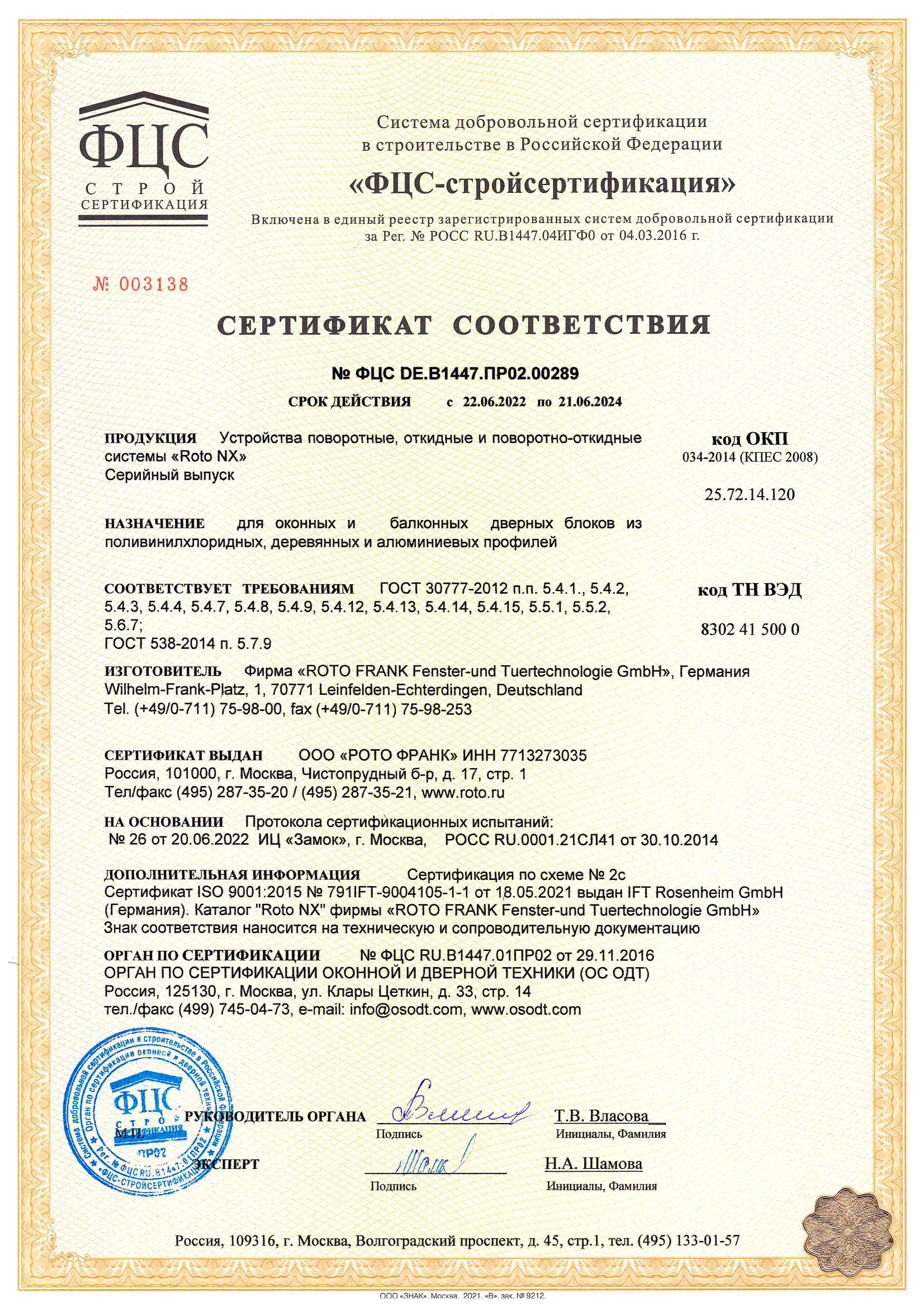 Сертификаты о соответствии ROTO