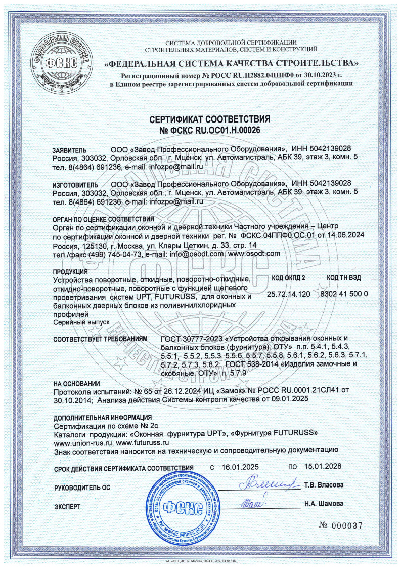 Сертификаты о соответствии FUTURUSS