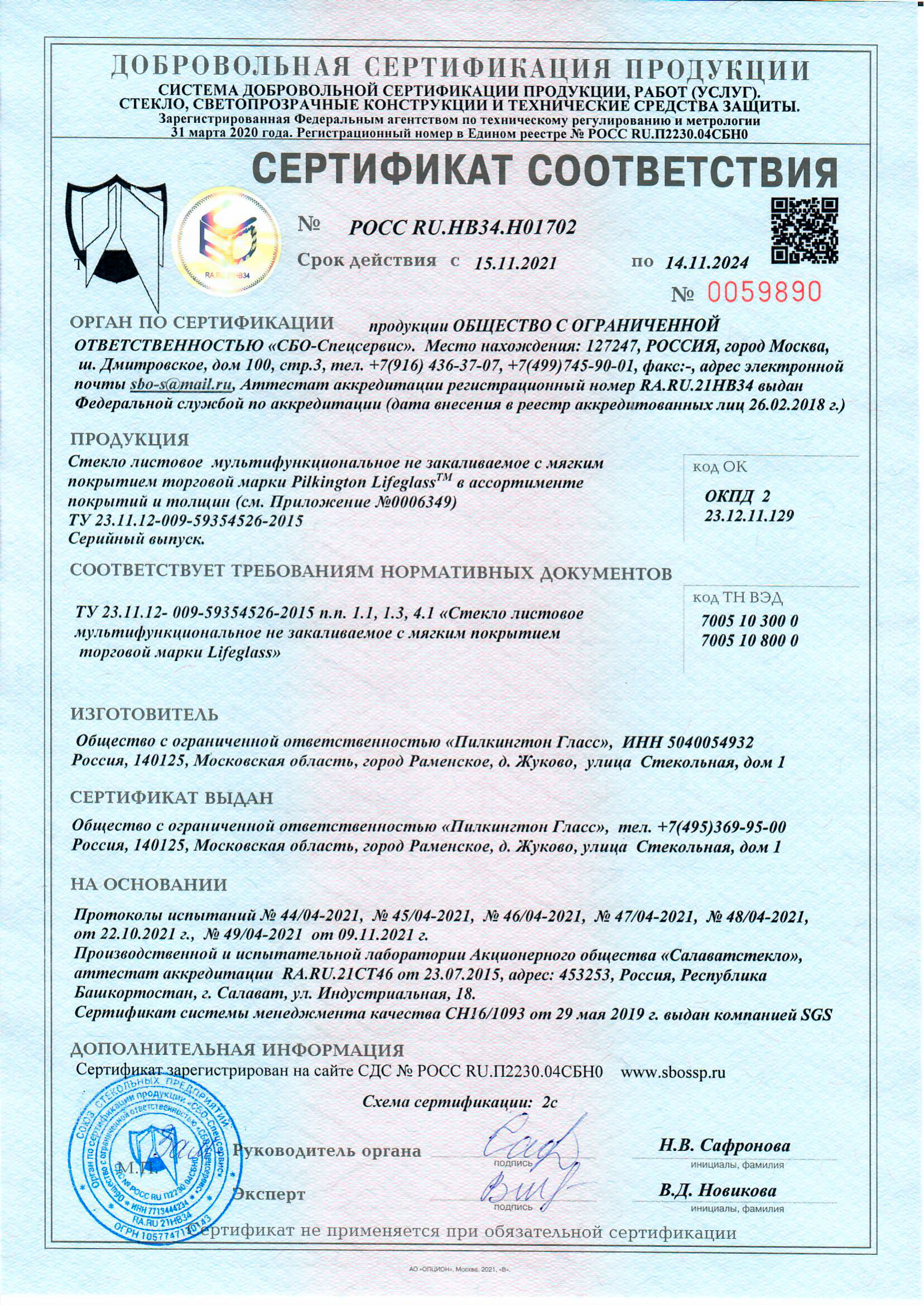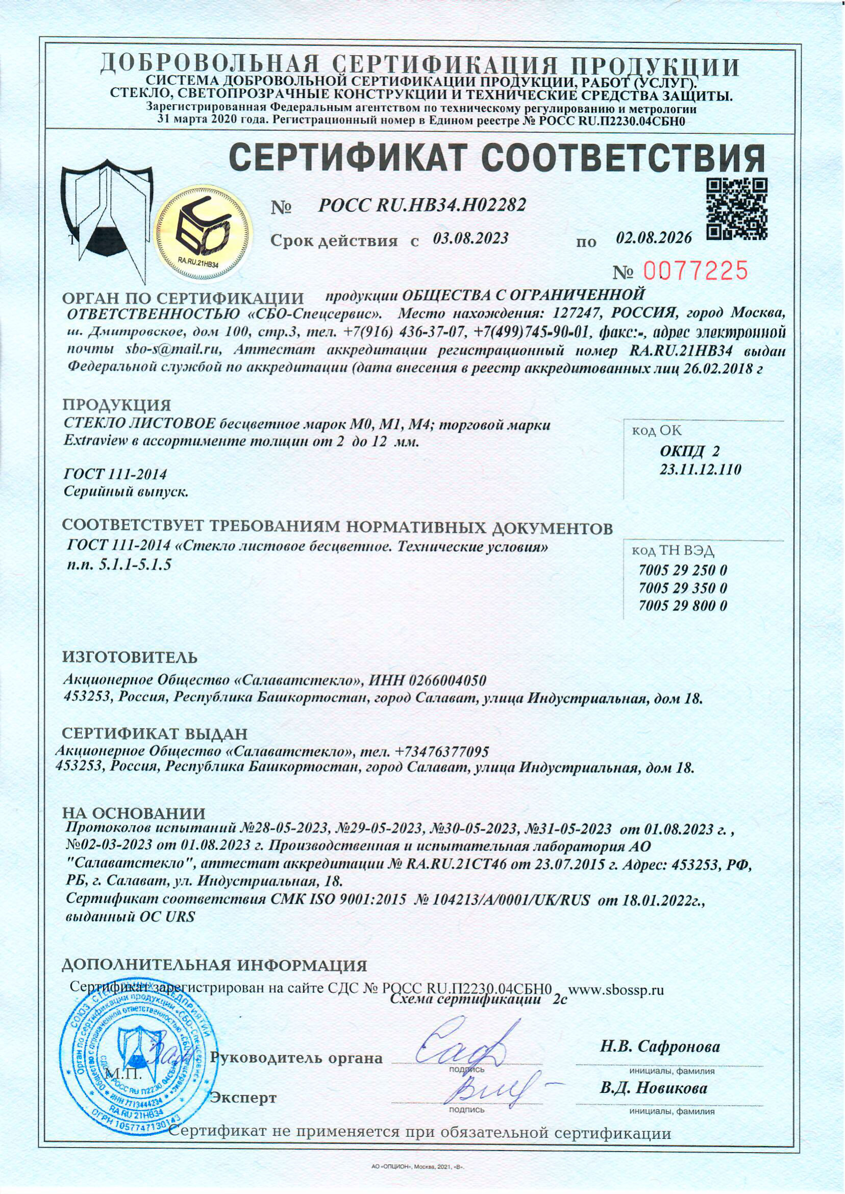 Сертификаты о соответствии стекла