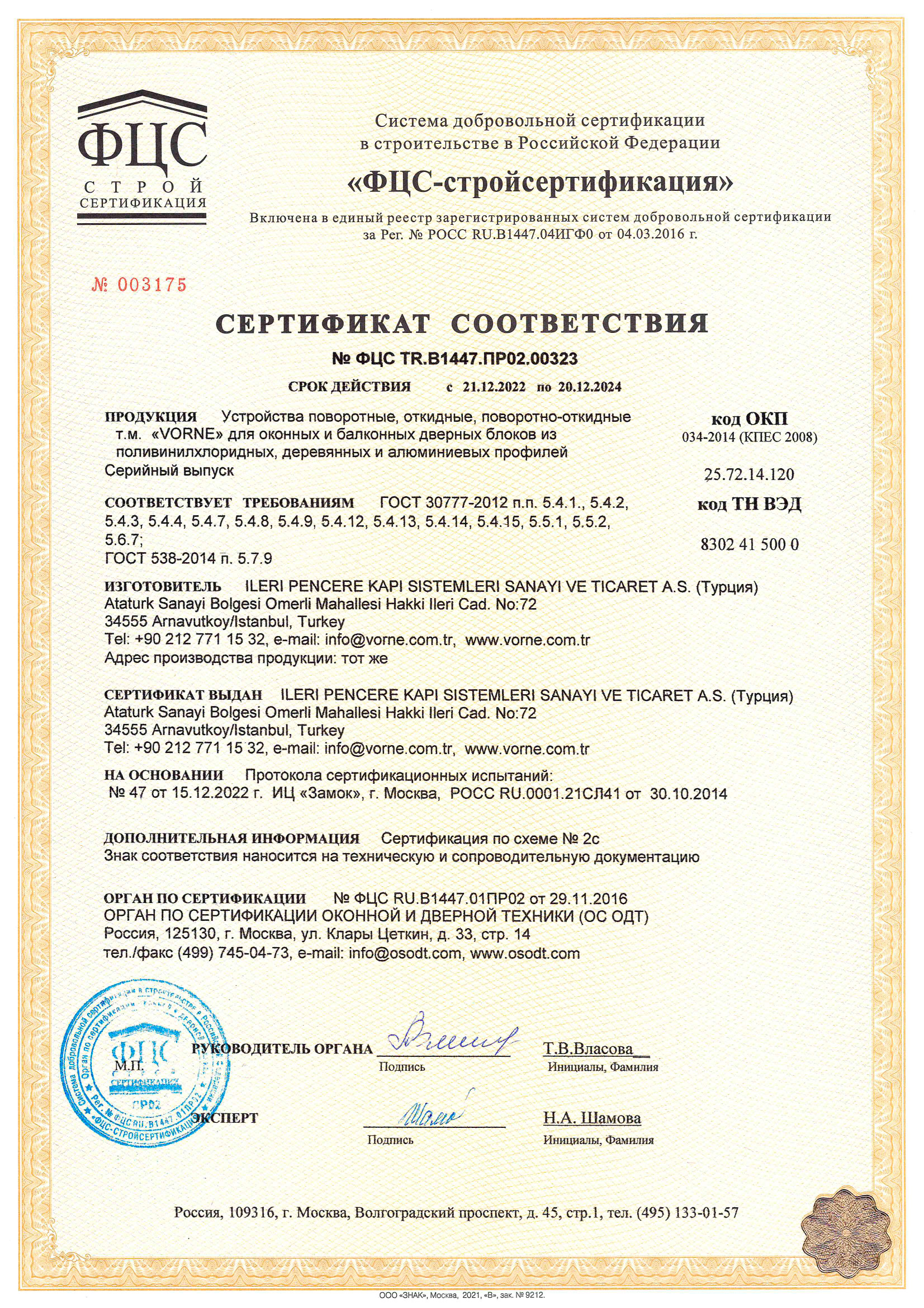 Сертификат о соответствии VORNE